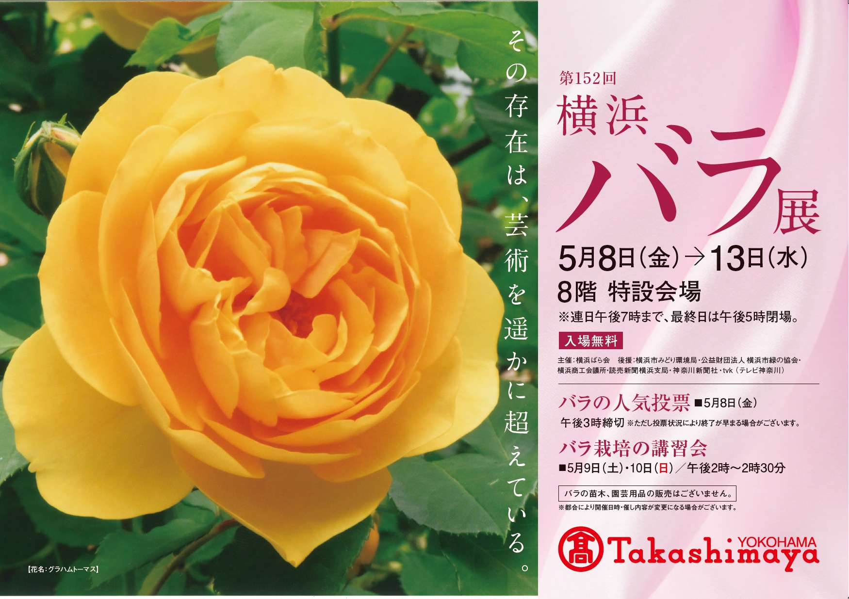| 5月中旬(6日間) | 横浜高島屋の催事場で「バラ展」を開催 |